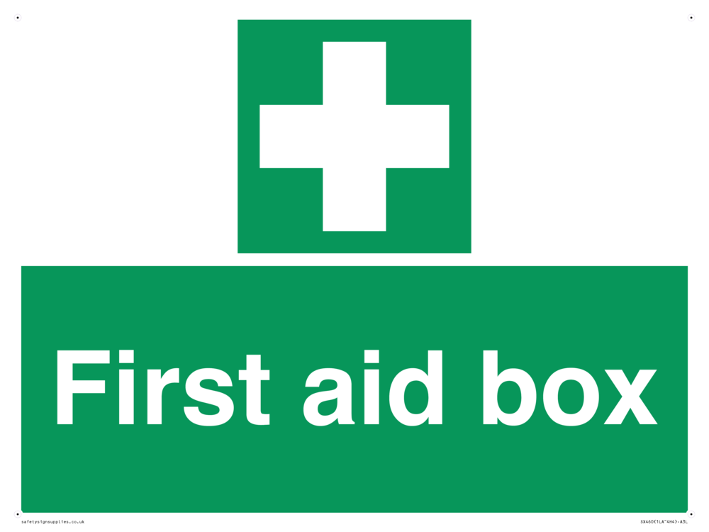 Sign Text: FIrst aid box