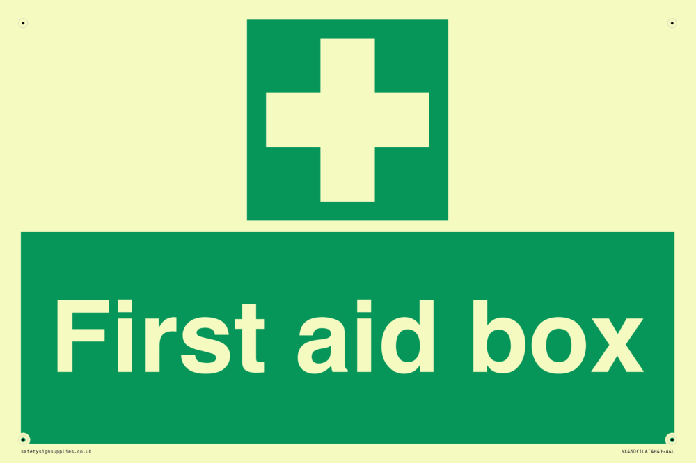 Sign Text: FIrst aid box