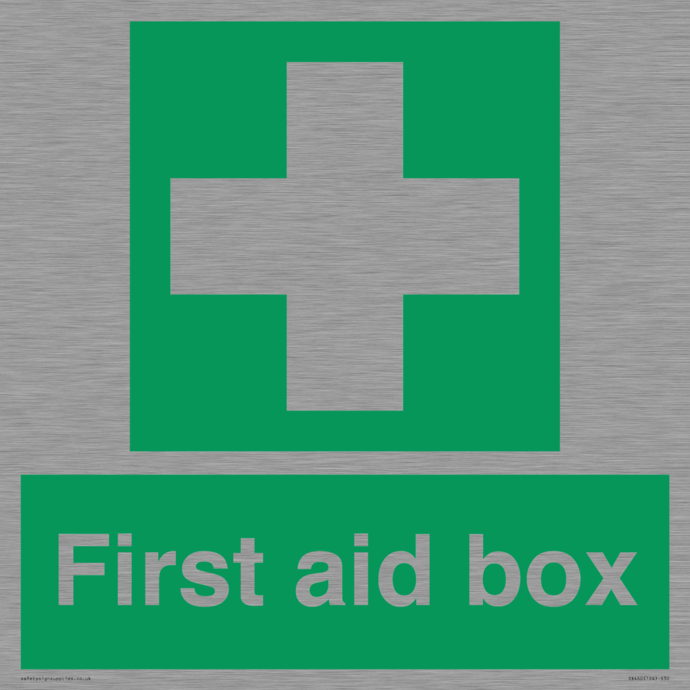Sign Text: FIrst aid box
