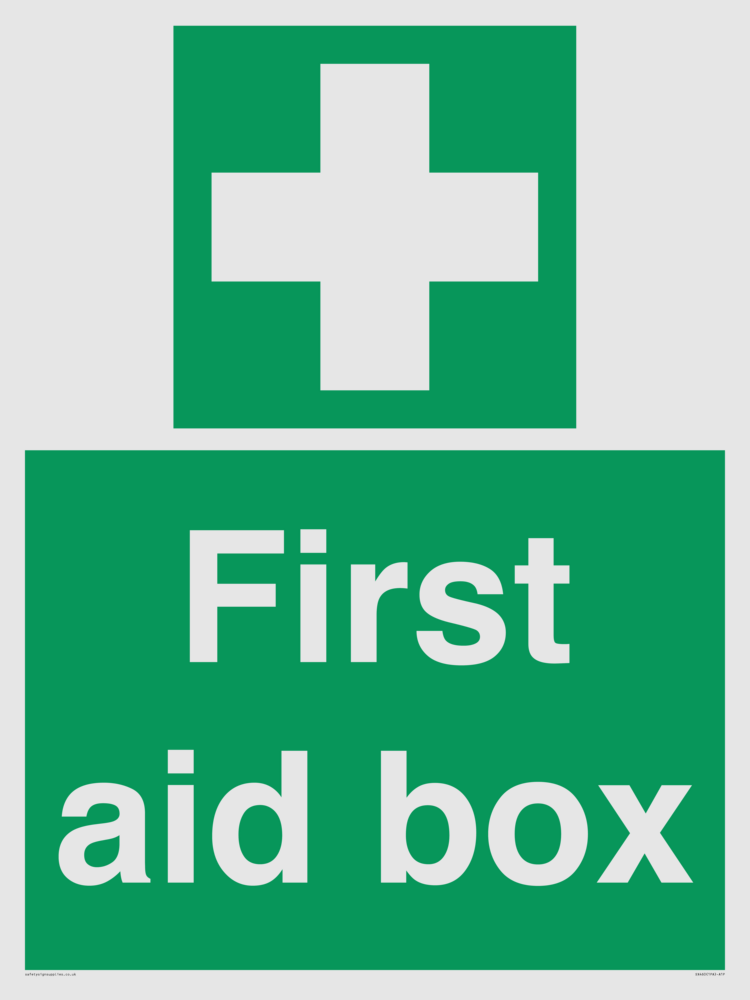 Sign Text: FIrst aid box