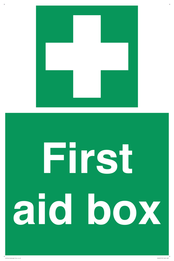 Sign Text: FIrst aid box