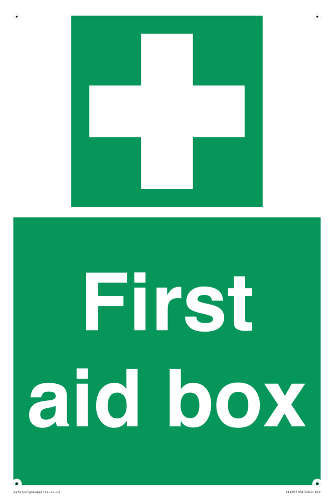 Sign Text: FIrst aid box