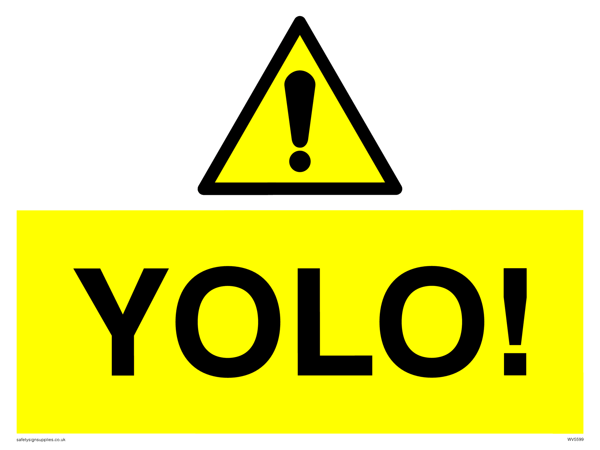 This sign contains a warning Exclamation Symbol - black exclamation mark on yellow triangle background.