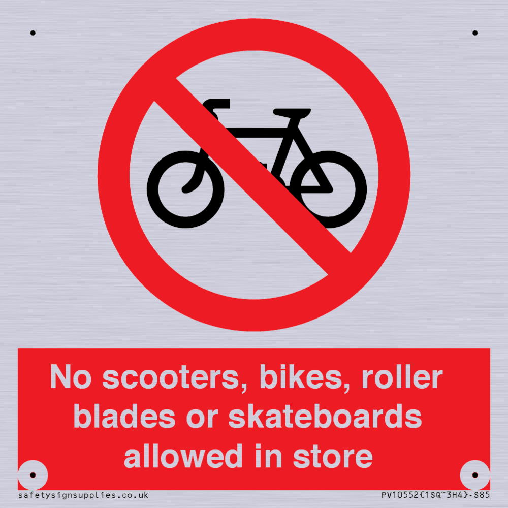 No scooters, bikes, roller blades or skateboards allowed in store Sign