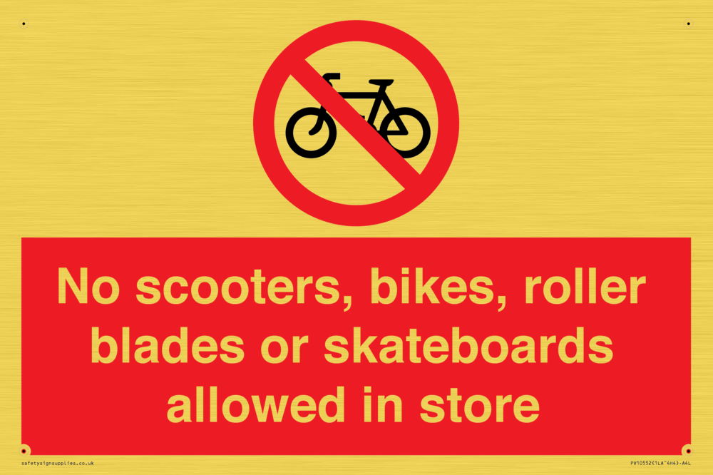 No scooters, bikes, roller blades or skateboards allowed in store