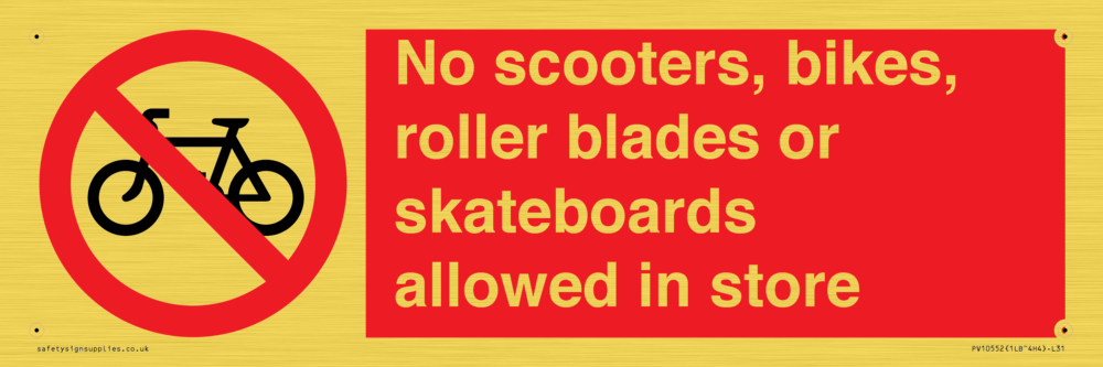 No scooters, bikes, roller blades or skateboards allowed in store