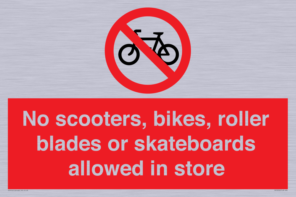 No scooters, bikes, roller blades or skateboards allowed in store Sign