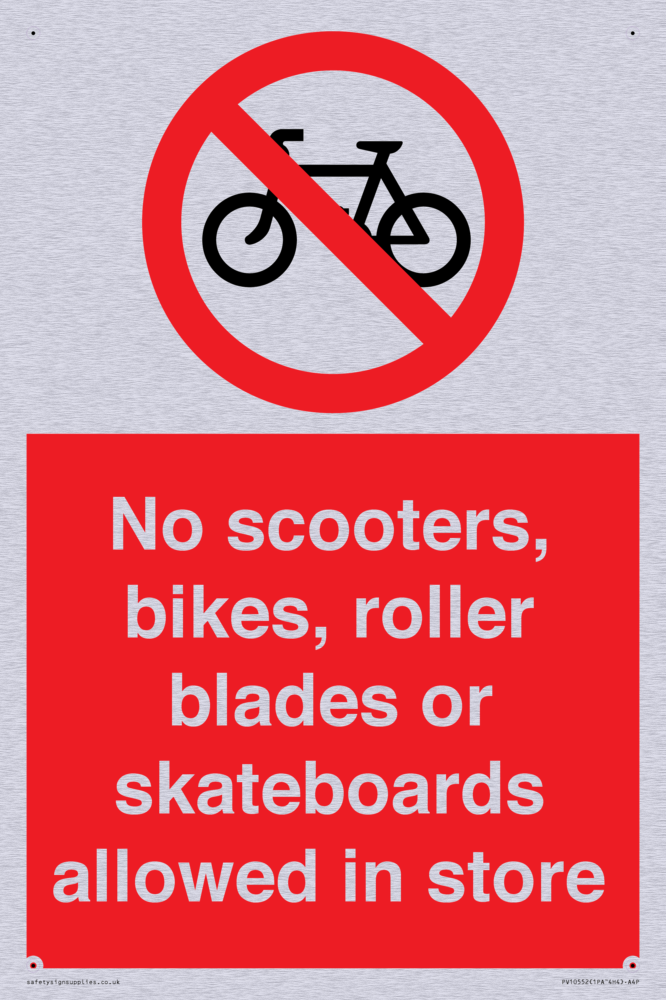 No scooters, bikes, roller blades or skateboards allowed in store