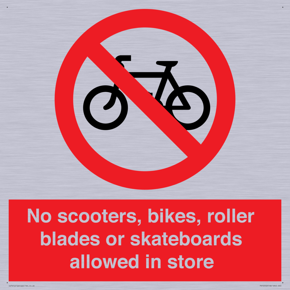 No scooters, bikes, roller blades or skateboards allowed in store