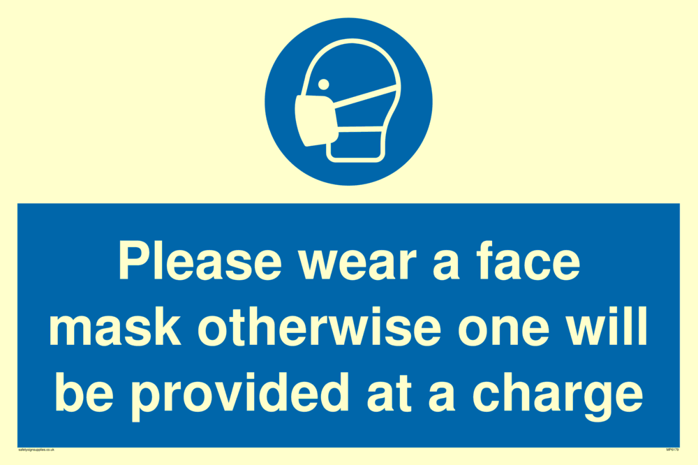 Please wear a face mask otherwise one will be provided at a charge Sign