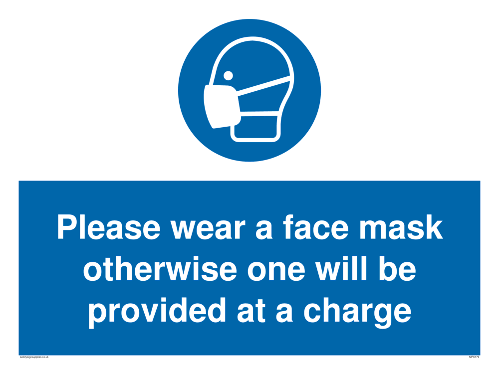 Please wear a face mask otherwise one will be provided at a charge Sign