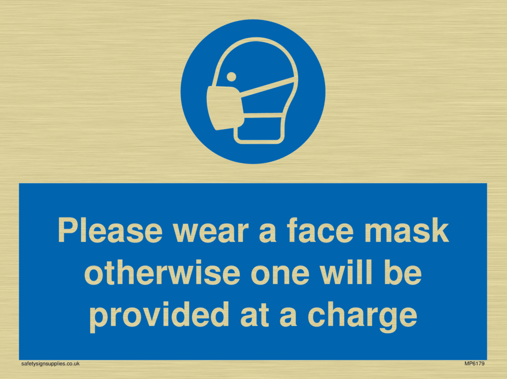 Please wear a face mask otherwise one will be provided at a charge Sign