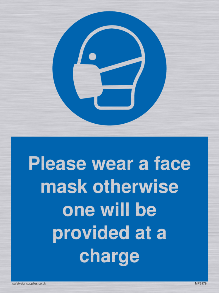 Please wear a face mask otherwise one will be provided at a charge Sign