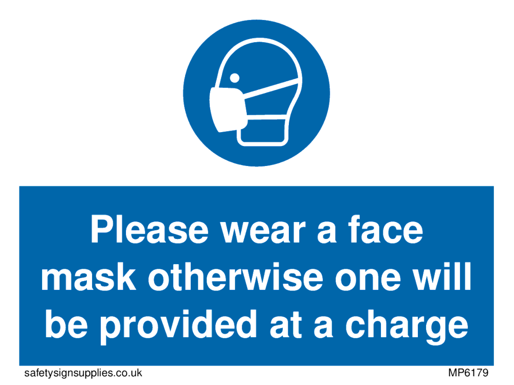 Please wear a face mask otherwise one will be provided at a charge Sign