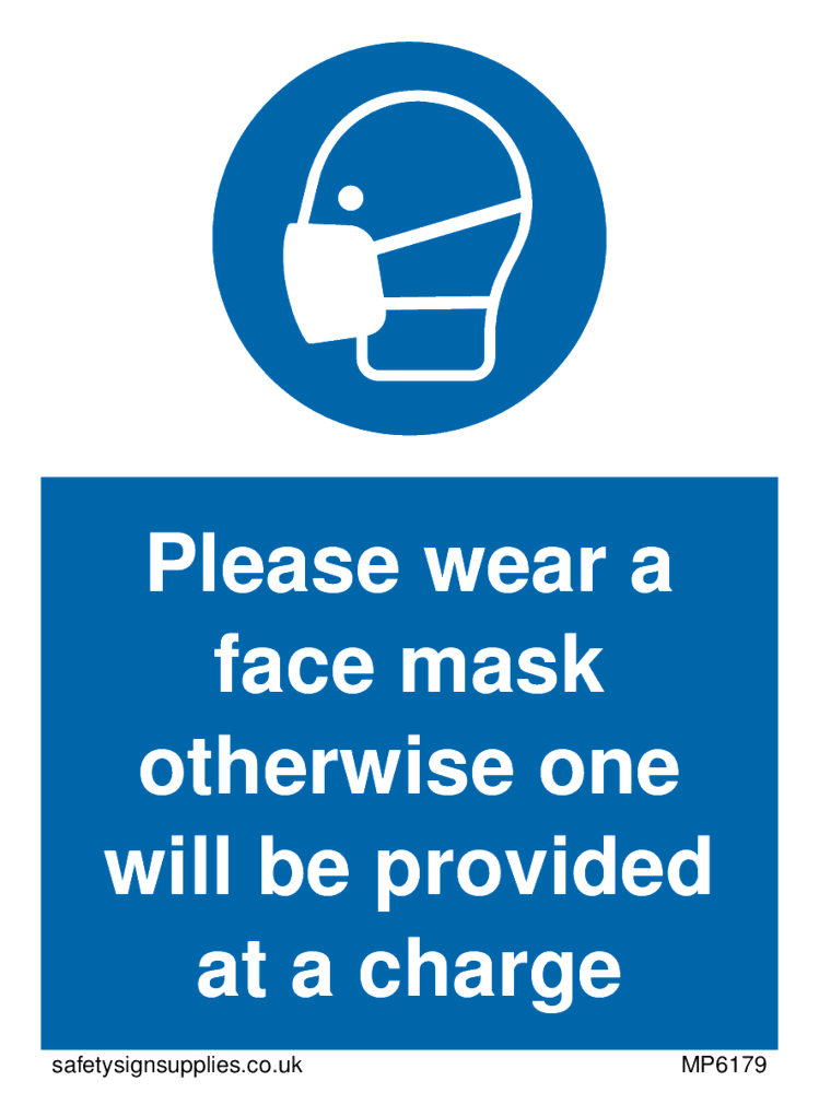 Please wear a face mask otherwise one will be provided at a charge Sign