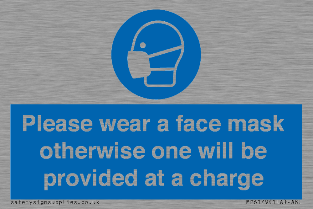 Please wear a face mask otherwise one will be provided at a charge Sign