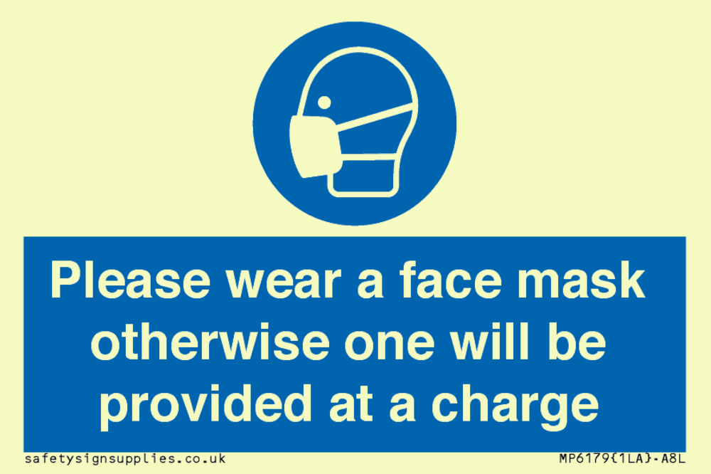 Please wear a face mask otherwise one will be provided at a charge Sign