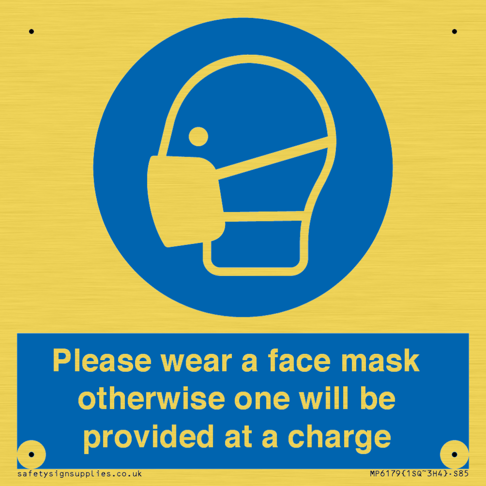Please wear a face mask otherwise one will be provided at a charge Sign