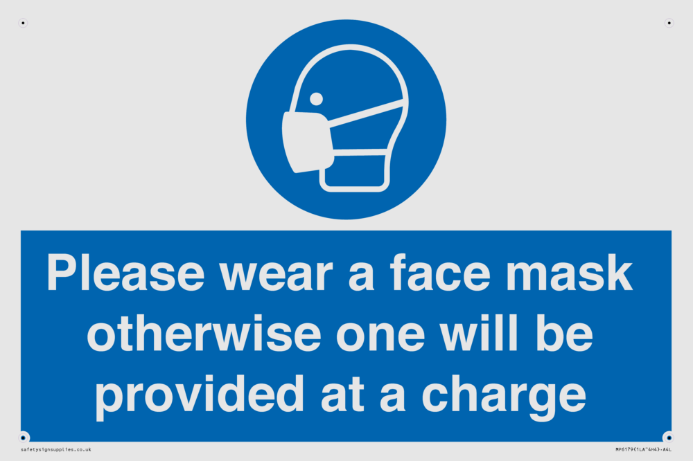 Please wear a face mask otherwise one will be provided at a charge Sign