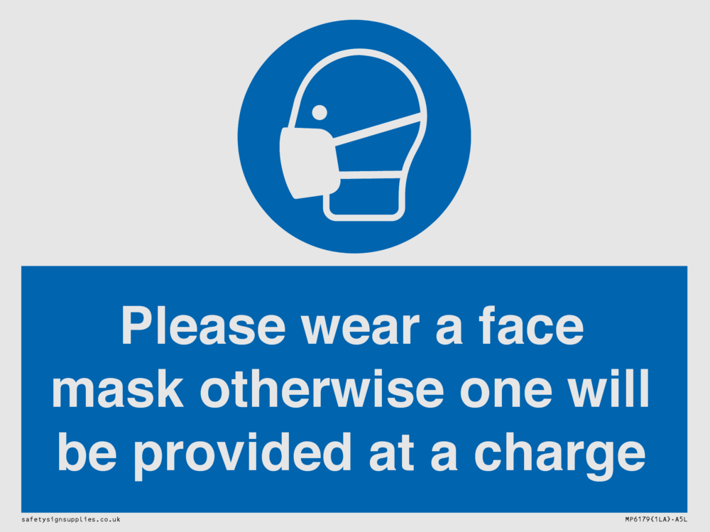 Please wear a face mask otherwise one will be provided at a charge Sign