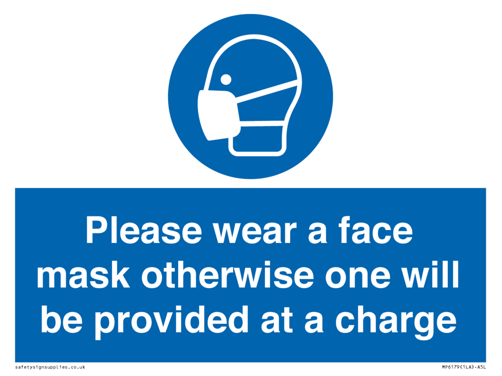 Please wear a face mask otherwise one will be provided at a charge Sign