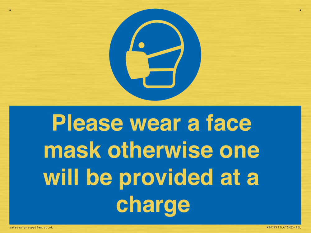 Please wear a face mask otherwise one will be provided at a charge Sign