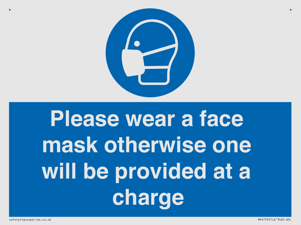 Please wear a face mask otherwise one will be provided at a charge Sign