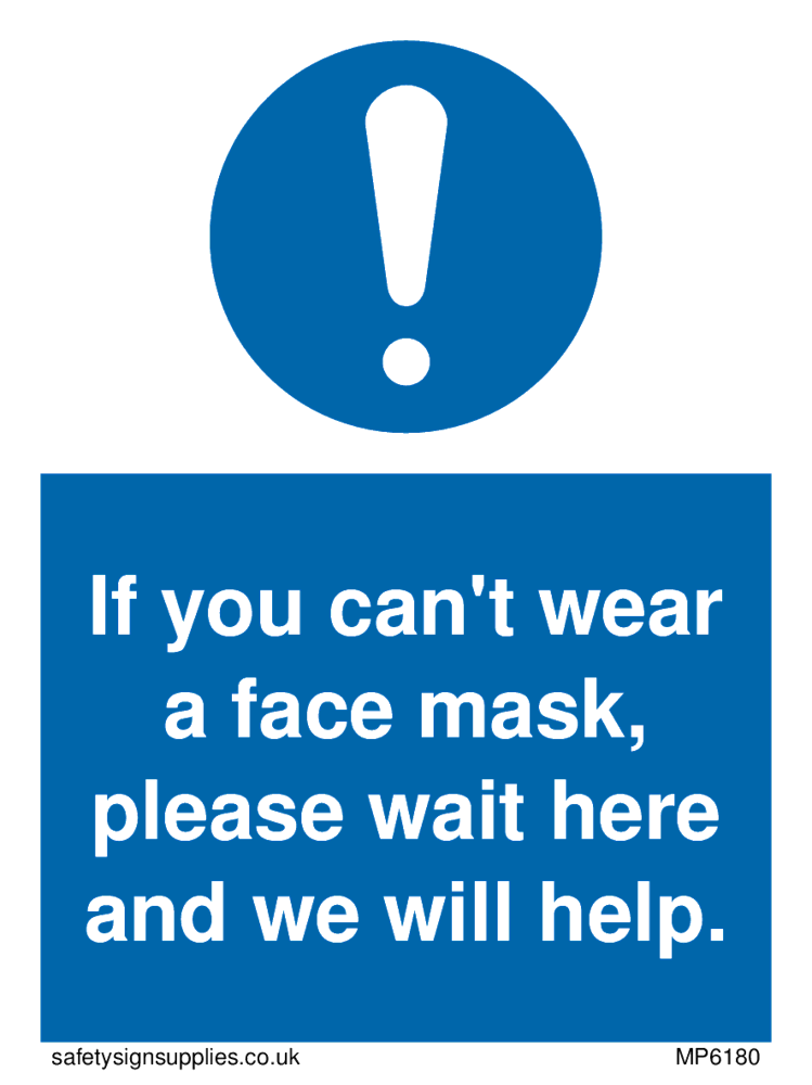 If you can't wear a face mask please wait here and we will help. sign