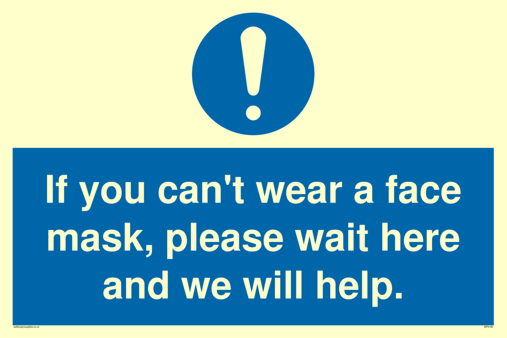If you can't wear a face mask please wait here and we will help. Sign
