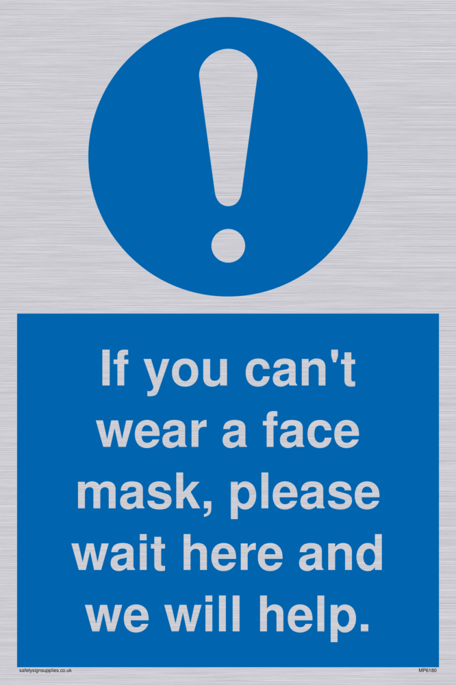 If you can't wear a face mask please wait here and we will help. Sign