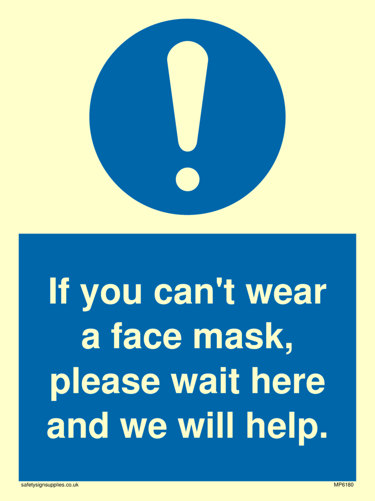 If you can't wear a face mask please wait here and we will help. Sign