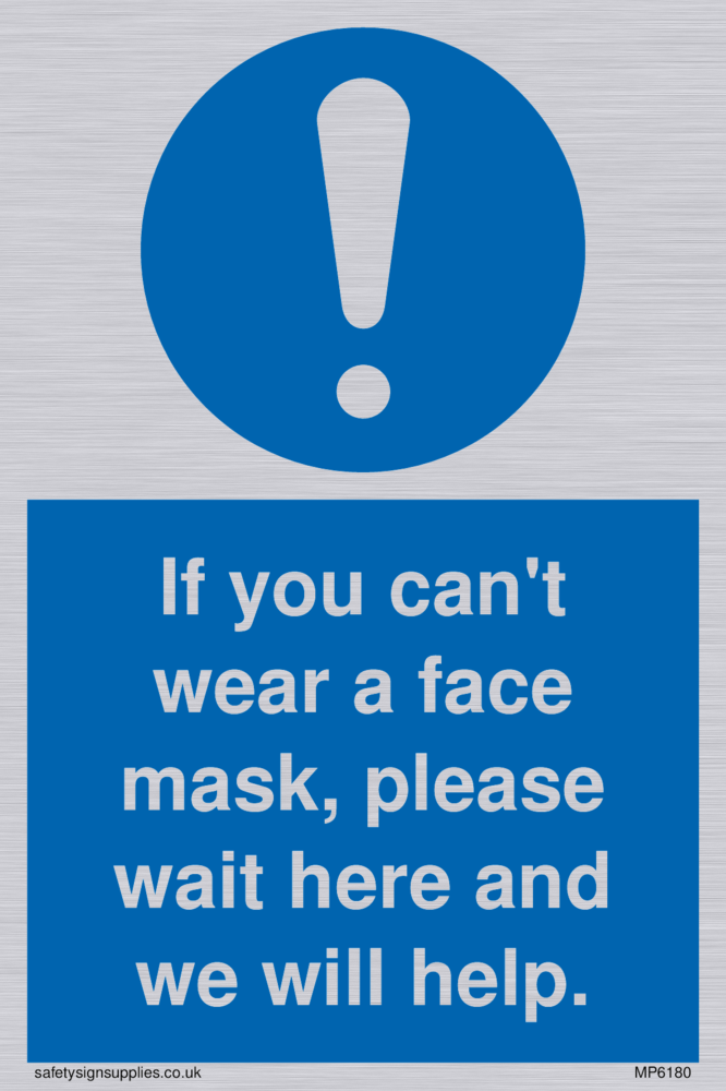 If you can't wear a face mask please wait here and we will help. Sign