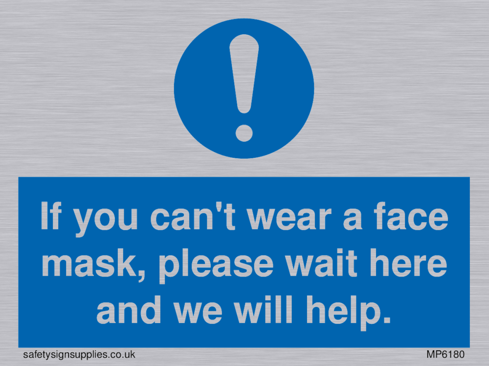 If you can't wear a face mask please wait here and we will help. Sign