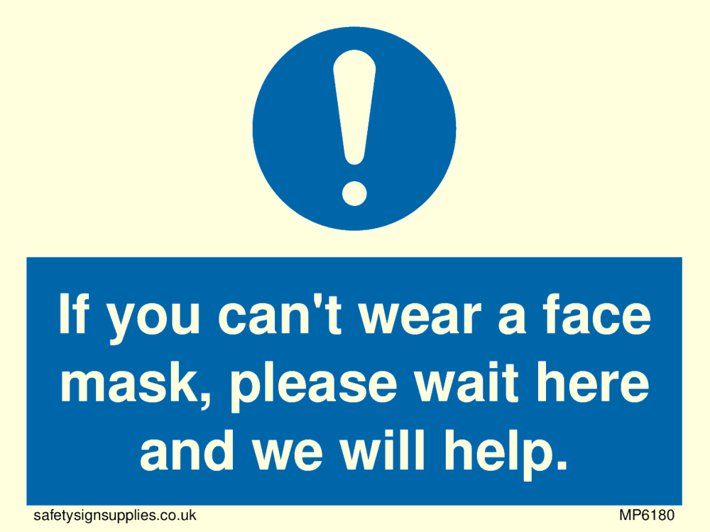 If you can't wear a face mask please wait here and we will help. Sign