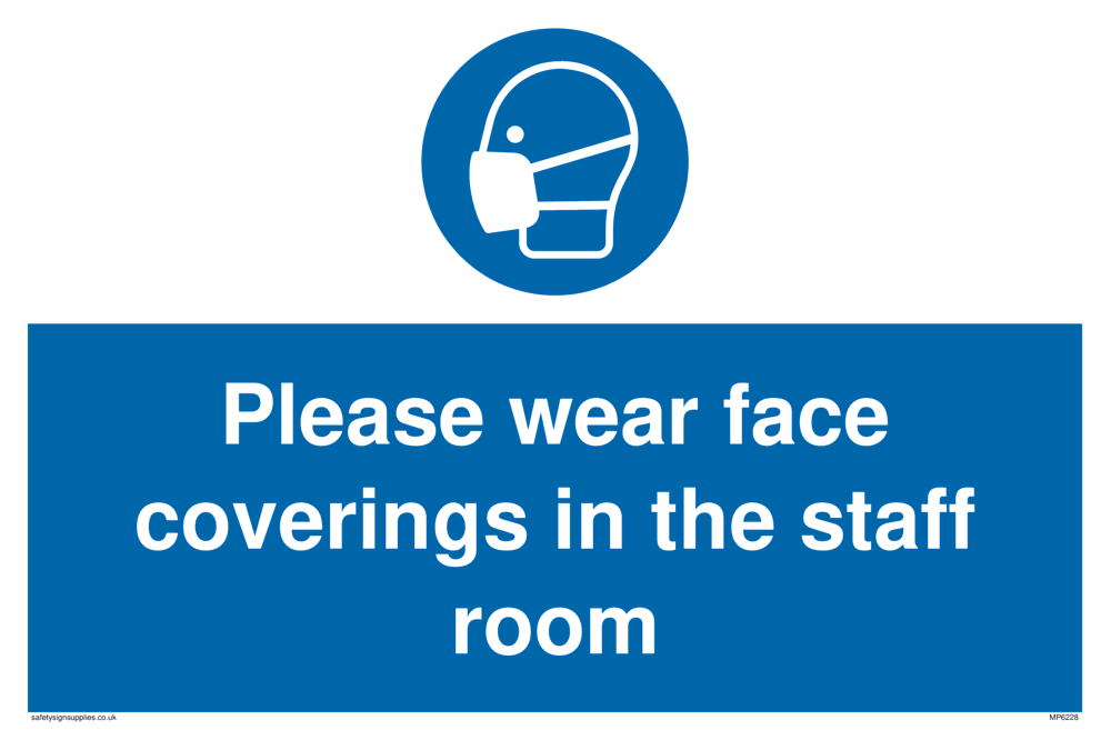 Please wear face coverings in the staff room Sign