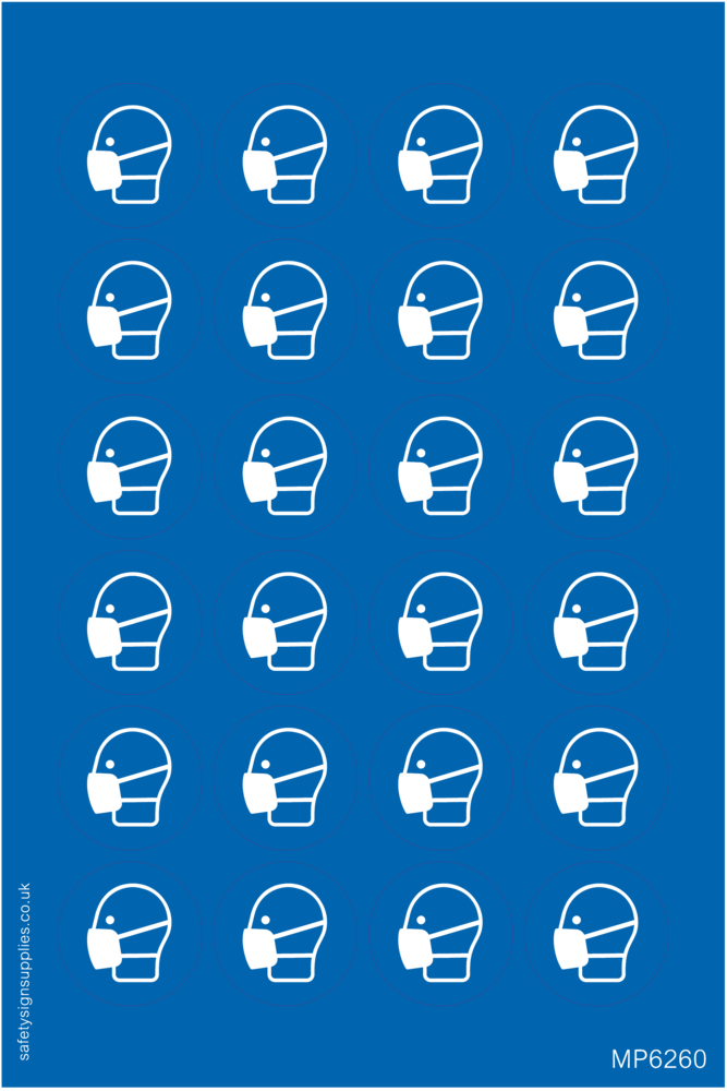 Sheet of 24 'Face covering symbol' 40mm circular stickers