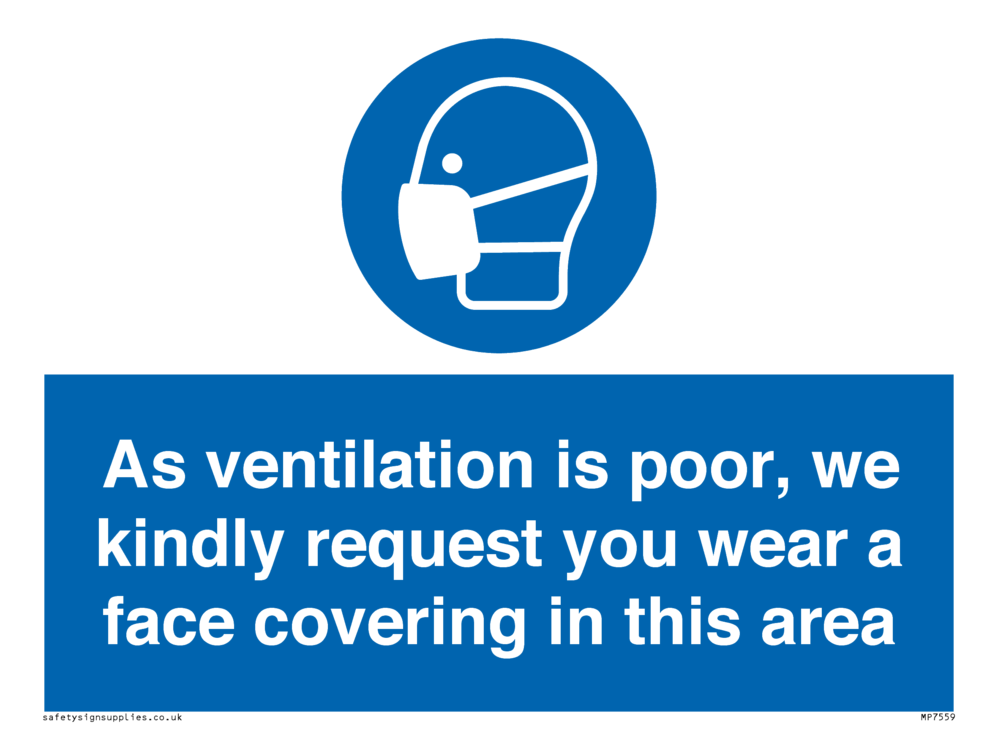 Sign Text: As ventilation is poor, we kindly request you wear a face covering in this area