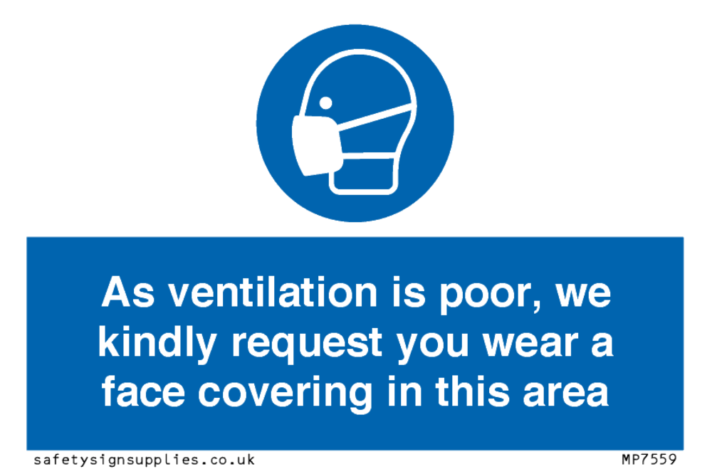 As ventilation is poor, we kindly request you wear a face covering in this area Sign