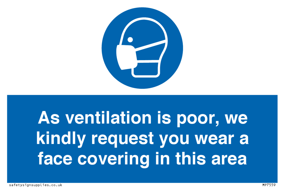 As ventilation is poor, we kindly request you wear a face covering in this area Sign