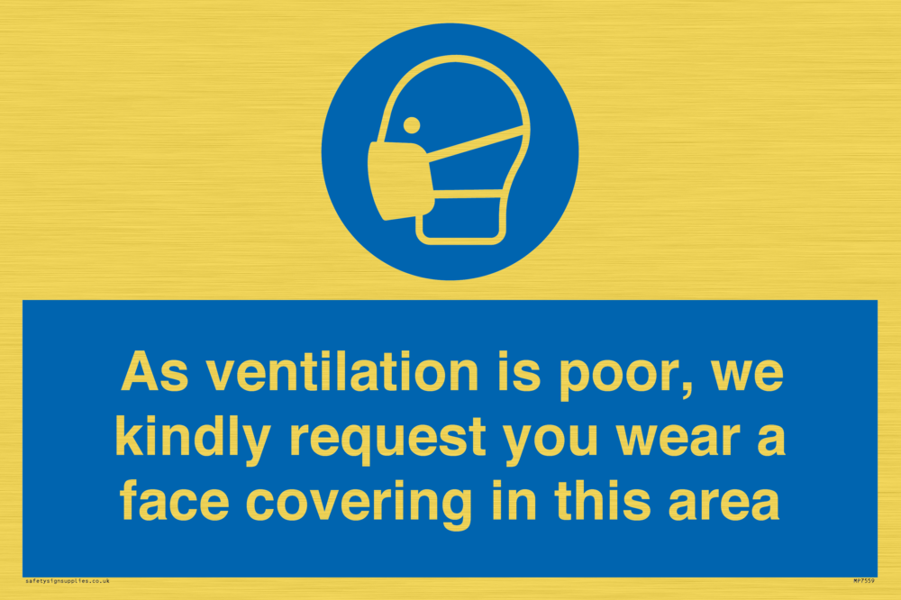 As ventilation is poor, we kindly request you wear a face covering in this area Sign