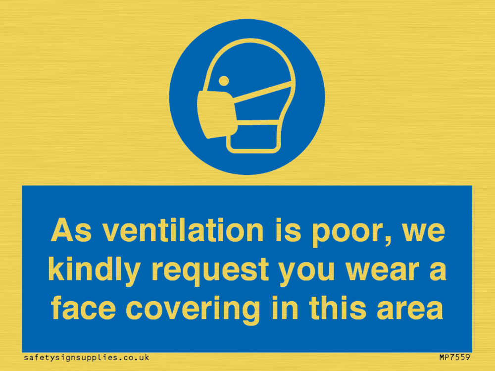As ventilation is poor, we kindly request you wear a face covering in this area Sign