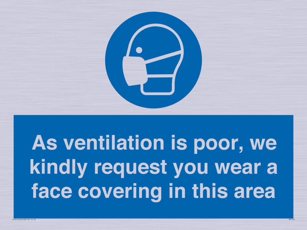As ventilation is poor, we kindly request you wear a face covering in this area Sign