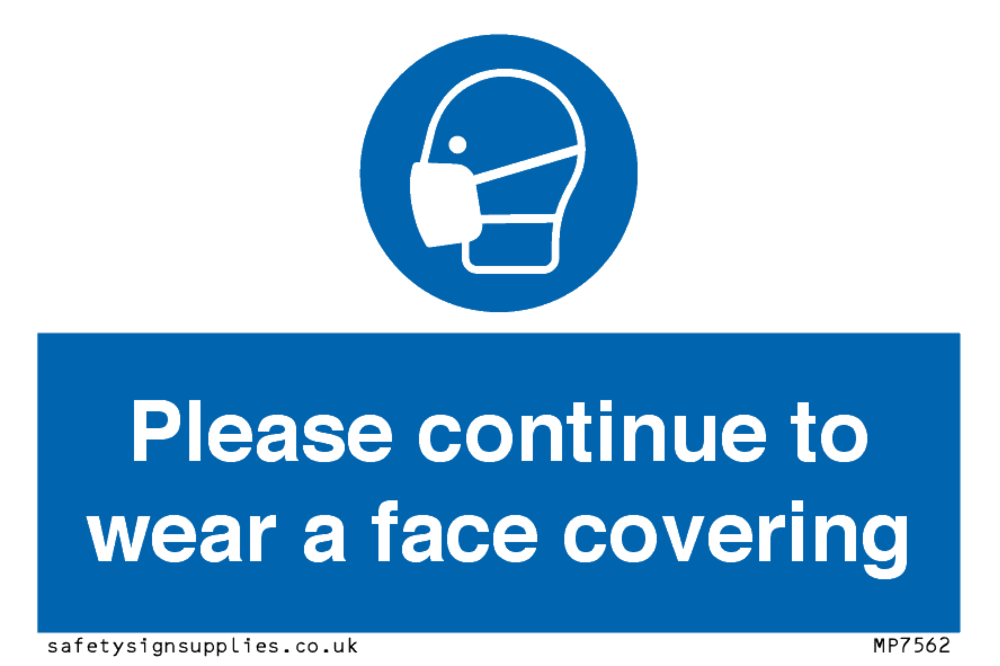 Please continue to wear a face covering Sign