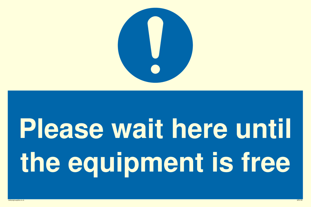 Sign Text: Please wait here until the equipment is free