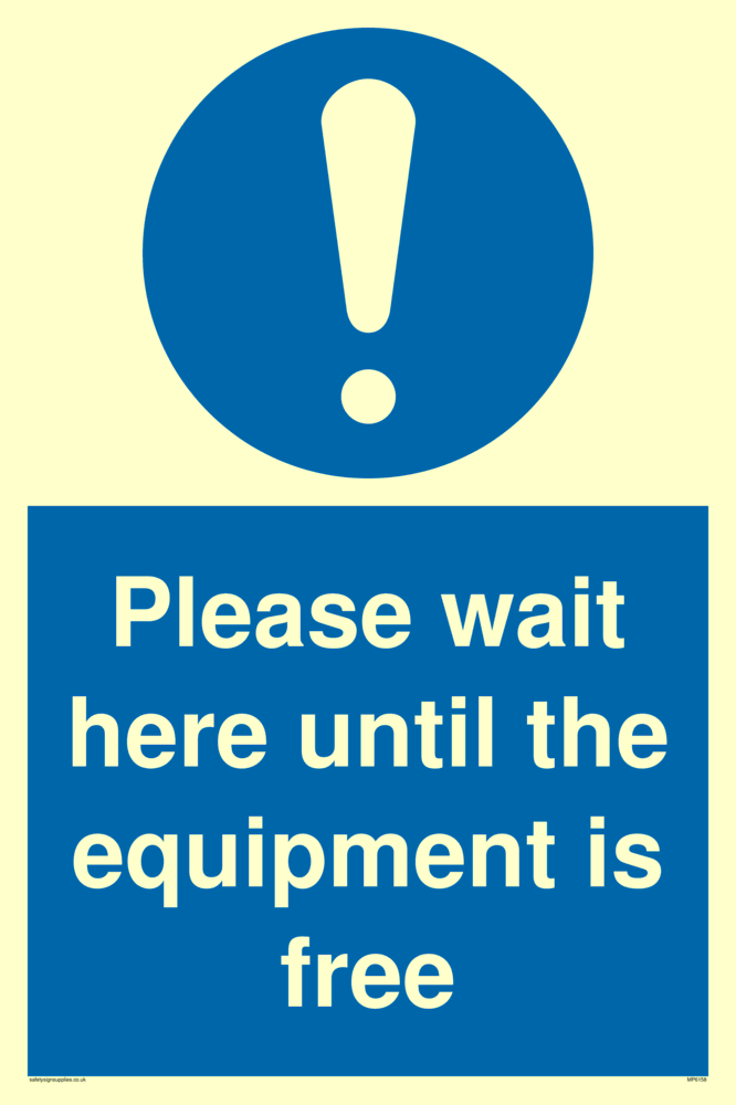 This sign contains a general Mandatory Exclamation Symbol - exclamation mark in white on blue circle background.