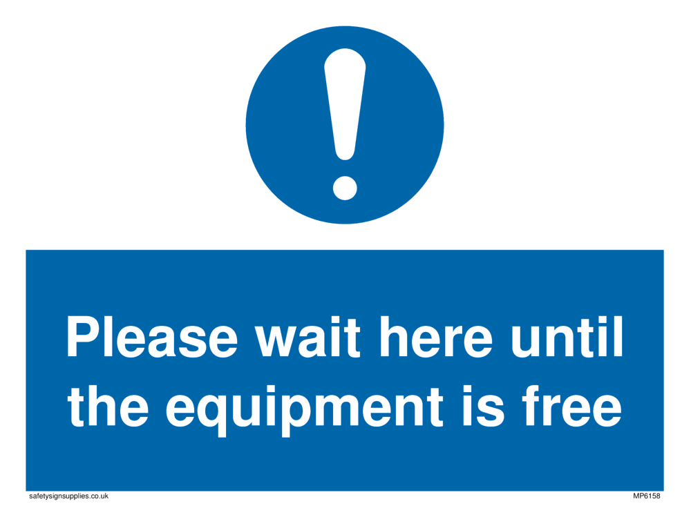 This sign contains a general Mandatory Exclamation Symbol - exclamation mark in white on blue circle background.