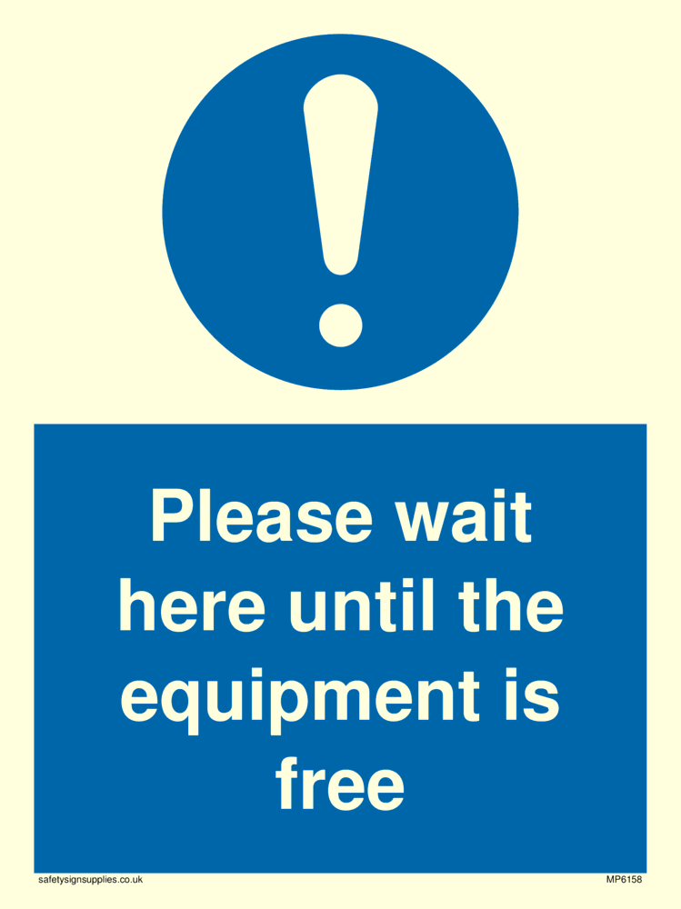 This sign contains a general Mandatory Exclamation Symbol - exclamation mark in white on blue circle background.
