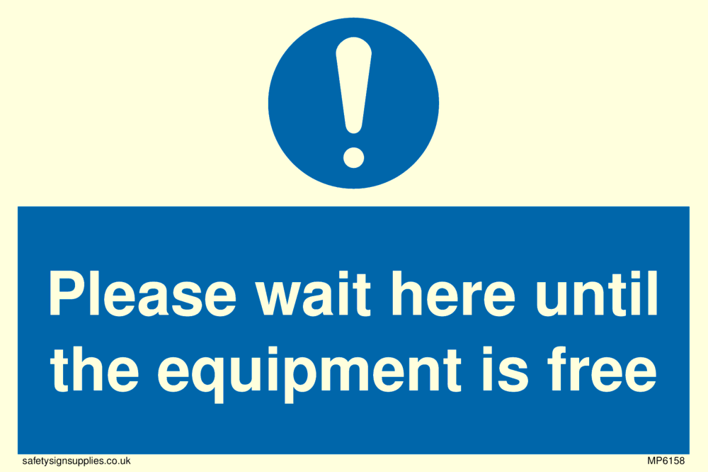 This sign contains a general Mandatory Exclamation Symbol - exclamation mark in white on blue circle background.