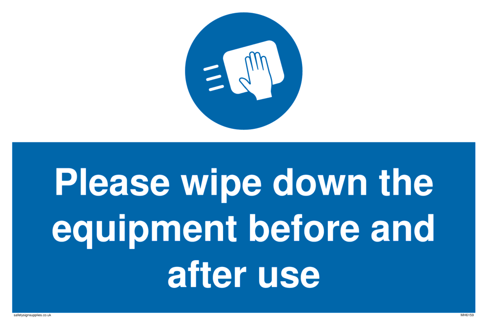 Sign Text: Please wipe down the equipment before and after use