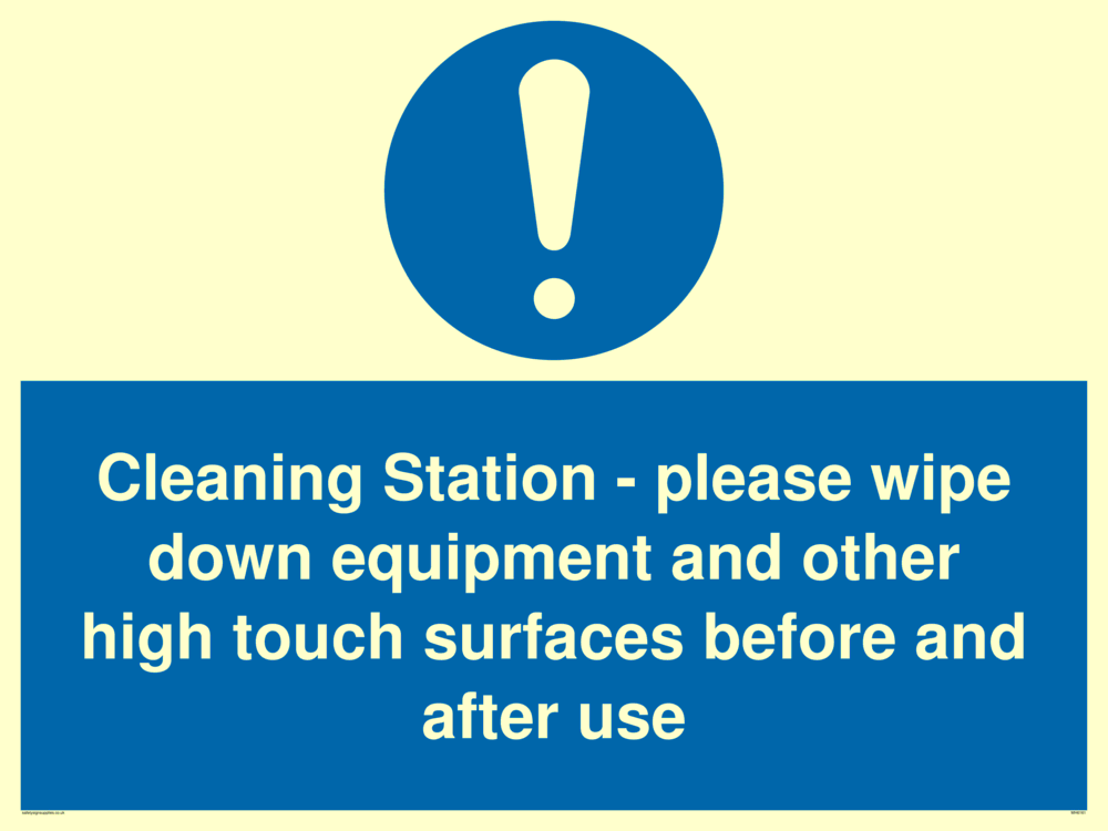 Sign Text: Cleaning Station - please wipe down equipment and other high touch surfaces before and after use